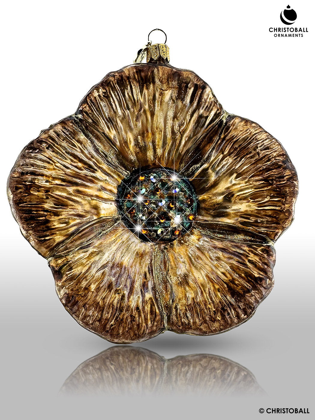 Eine exklusive Weihnachtsform / Blüten-Ornament mit Relief aus Glas mit wunderschönen Details in der Bemalung und Swarovski®-Kristallen.