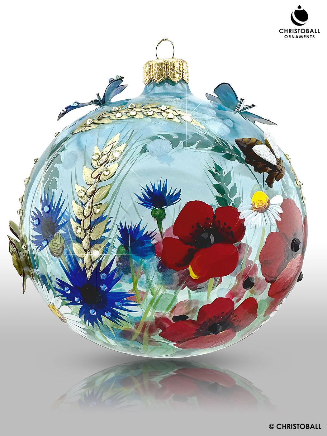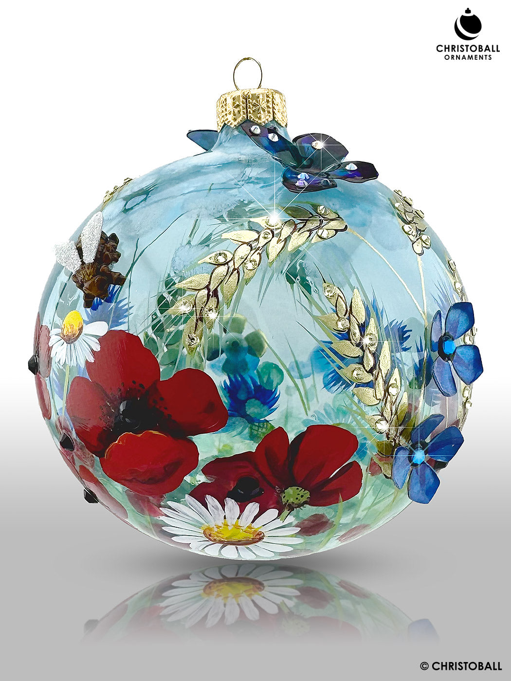 Sommerwiese - Limitierte Weihnachtskugel aus Glas mit Mohn-, Kornblumen und Margeriten sowie Swarovski®-Kristallen.
