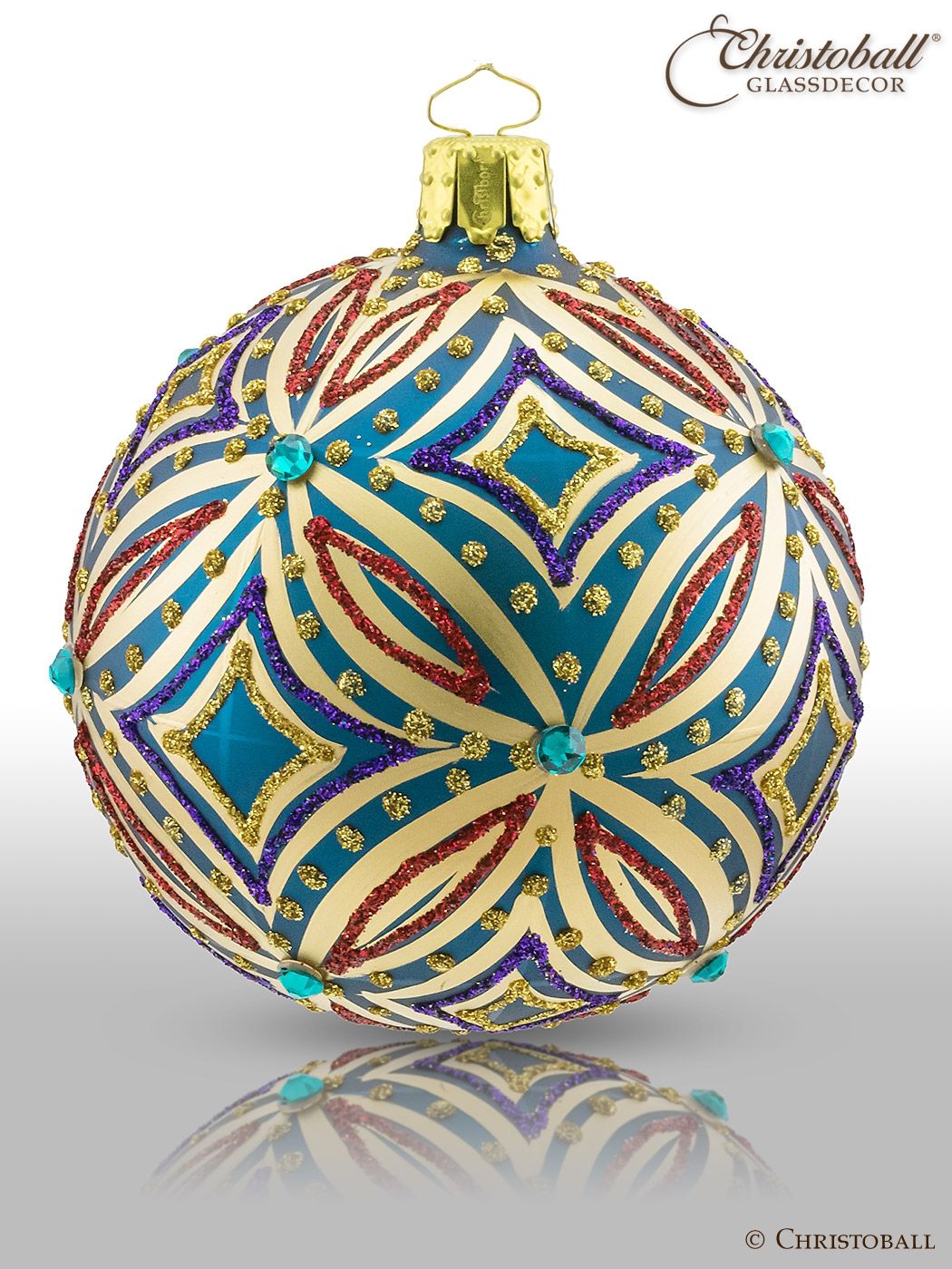 Weihnachtskugel von Christborn, von Hand mit funkelndem Glitter und Swarovski-Kristallen verziert.