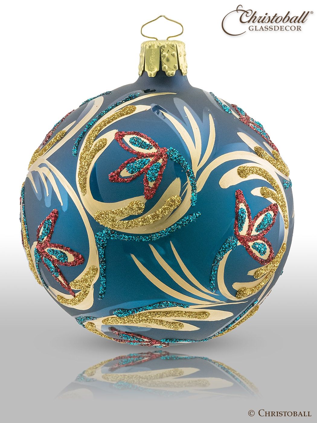 Weihnachtskugel von Christborn, von Hand mit funkelndem Glitter verziert.